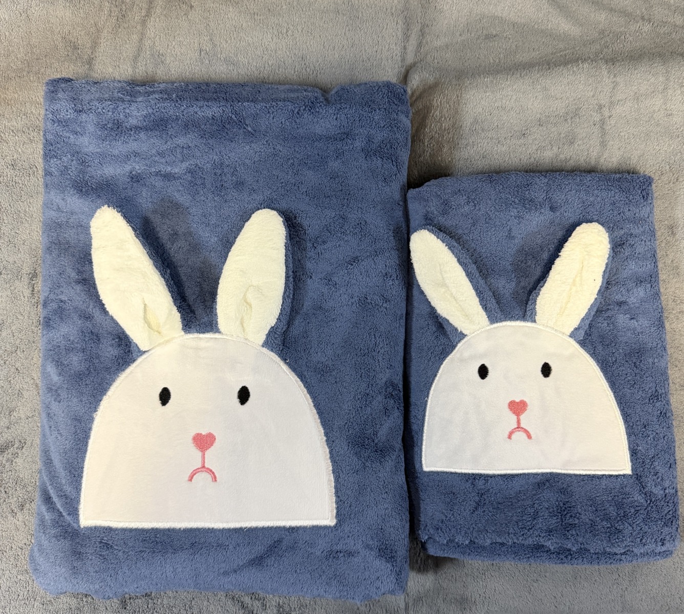 Komplet ręczników z haftowanym zajączkiem i odstającymi uszami 3D